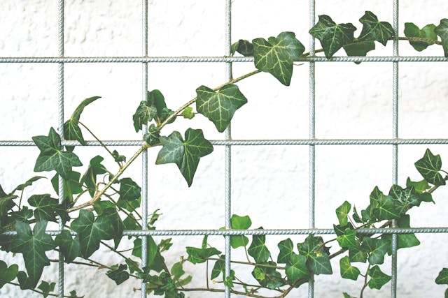 Zorg voor een solide basis waar de Hedera tegenaan kan klimmen. Een gaaspaneel of draadscherm is een populaire keuze, omdat het licht is en gemakkelijk te plaatsen. Bevestig het frame stevig aan palen of een bestaande schutting, zodat het bestand is tegen de groei van de planten en weersinvloeden.